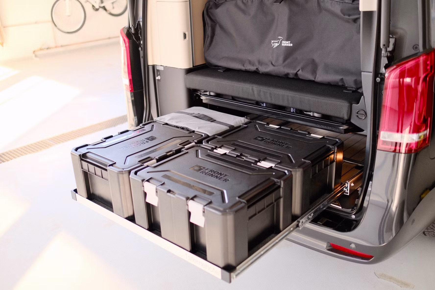 Das Beladen und Entladen des Fahrzeugs wird dank der Front Runner Flatpacks oder Euroboxen sehr vereinfacht, da man die Boxen Zuhause in Ruhe beladen kann.